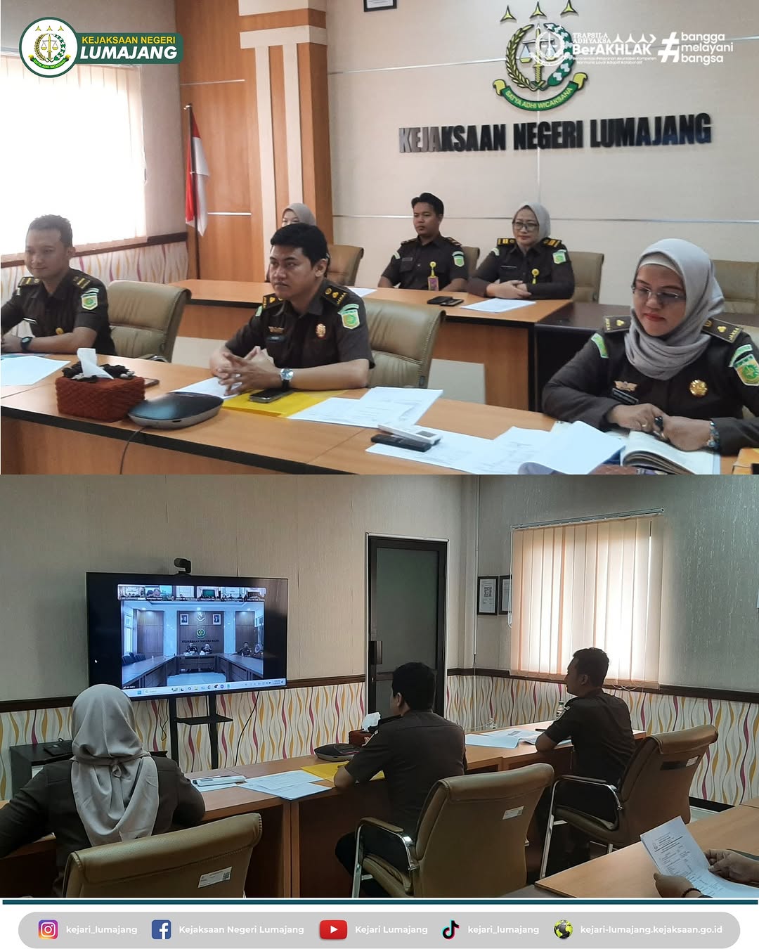 Bertempat di Ruang Vidcon Kejaksaan Negeri Lumajang, Kepala Sub Bagian Pembinaan, Kepala Seksi Pidum, Kepala Seksi PAPBB, Kepala Seksi Perdata dan Tata Usaha Negara beserta jajaran mengikuti kegiatan Monev oleh Asisten Pengawasan Kejaksaan Tinggi Jawa Timur.
