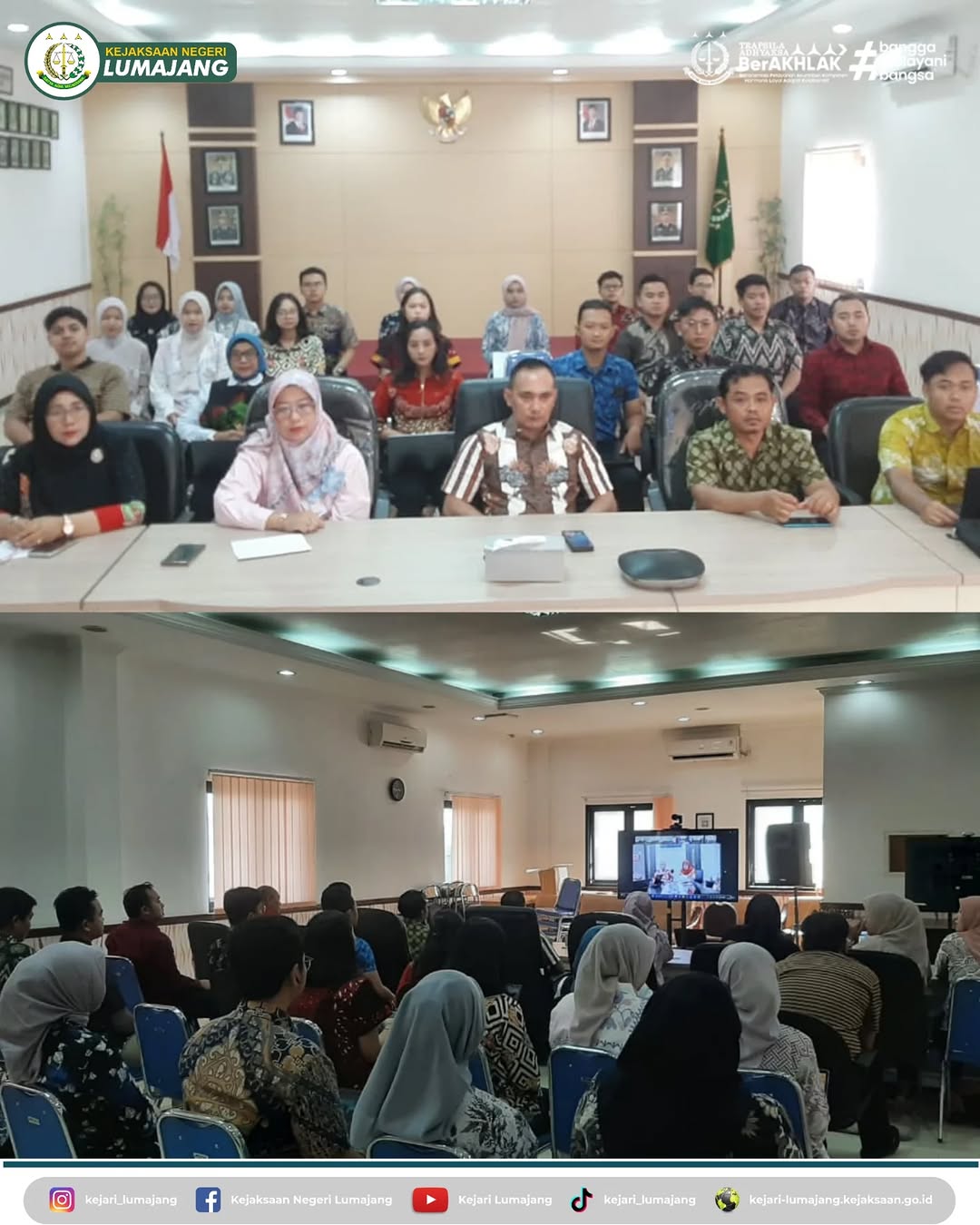 Bertempat di Aula Soeprapto Kejaksaan Negeri Lumajang, Kepala Sub Bagian Pembinaan beserta seluruh pegawai Kejaksaan Negeri Lumajang mengikuti Sosialisasi oleh Biro Kepegawaian Kejaksaan RI tentang Kewajiban Kepatuhan Pelaporan Perjanjian Kinerja, Perencanaan Kinerja, Penyusunan SKP melalui E-Kinerja serta Penginputan SPT, LHKPN, SKP di aplikasi MySimkari.