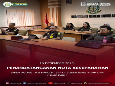 Pada hari Kamis tanggal 18 Desember 2025 bertempat di Aula Soeprapto Kejaksaan Negeri Lumajang, Kepa ...