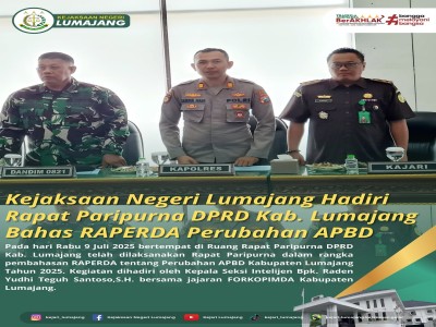 Pada hari Rabu 9 Juli 2025 bertempat di Ruang Rapat Paripurna DPRD Kab. Lumajang telah dilaksanakan ...
