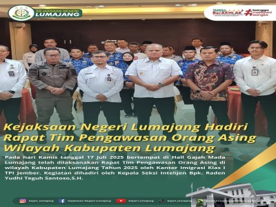 Pada hari Kamis tanggal 17 Juli 2025 bertempat di Hall Gajah Mada Lumajang telah dilaksanakan Rapat ...