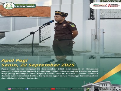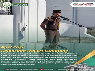 Halo Sobat Adhyaksa !!!Hari ini Kejari Lumajang telah melaksanakan kegiatan Apel Pagi yang dipimpin ...